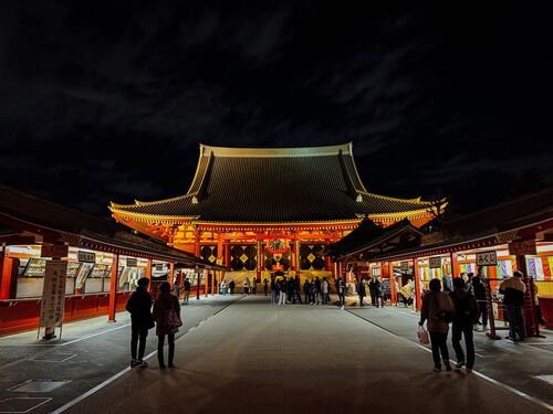 昼間の喧騒とは異なる静寂な夜の世界がそこにはあった。 (浅草寺/東京・浅草、iPhone 15 Pro Max)